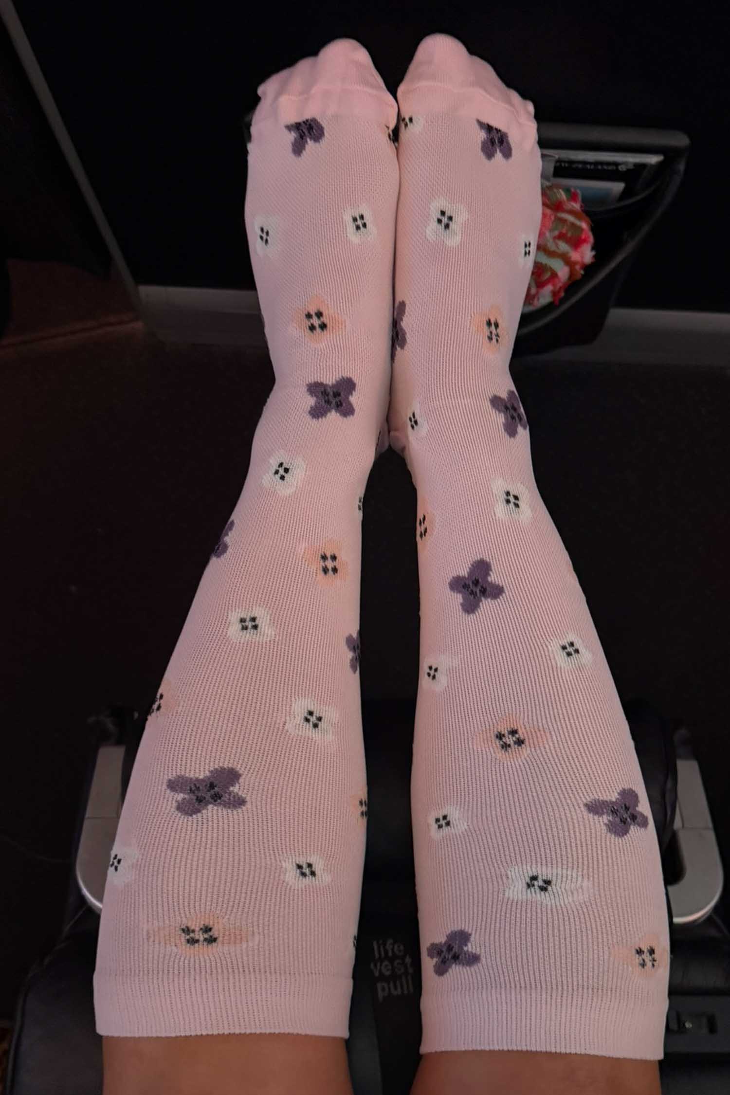 Our socks feature true graduated compression, with the highest pressure at the ankle, decreasing up the leg. This supports circulation and reduces fatigue during long periods on your feet or long flights