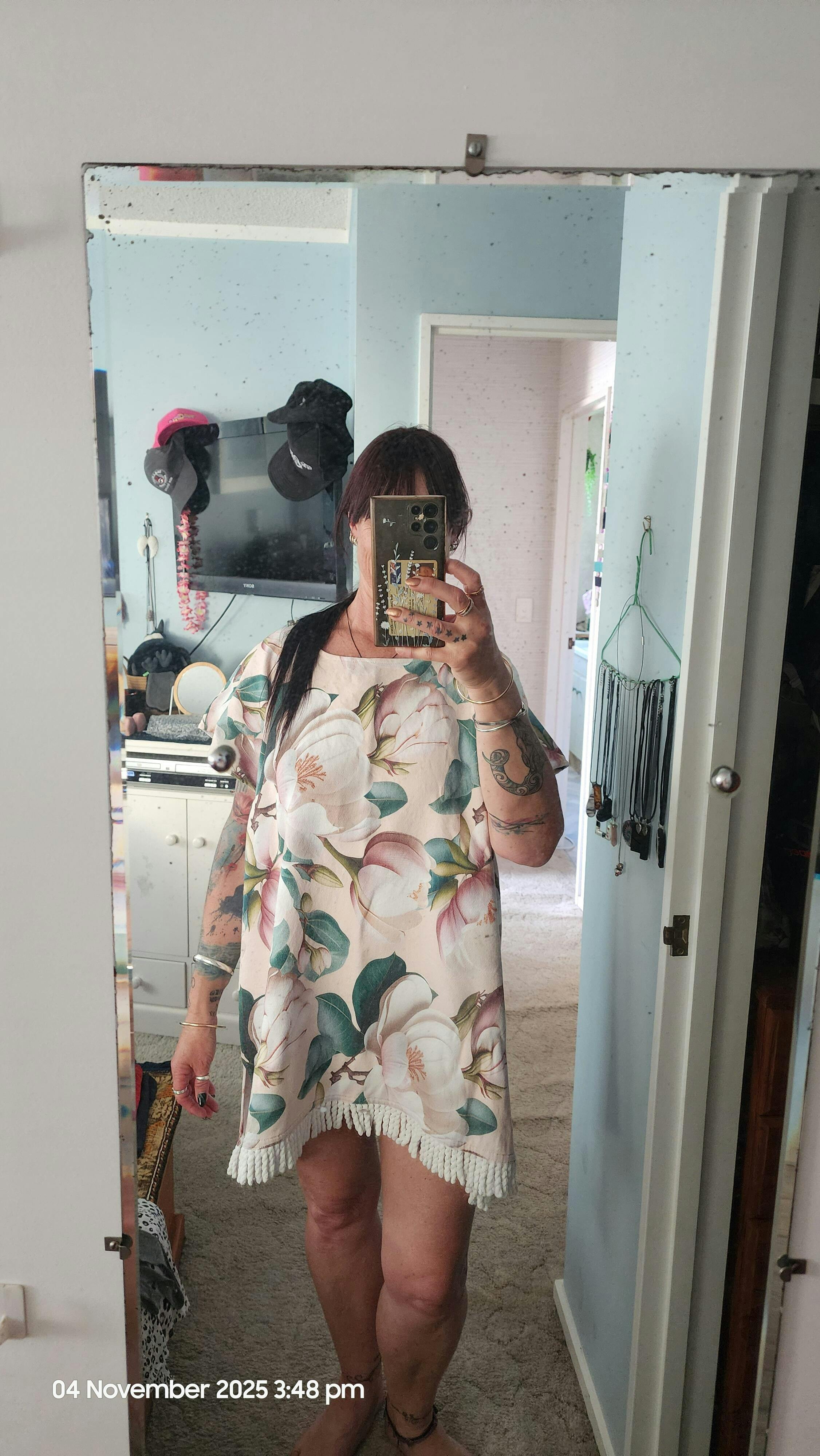 Dimensions: approx. 92 cm wide (laying flat), 84 cm long plus tassels