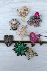Give your outfit a pop with this stunning brooch! Features a pin at the back so you can attach it to your favourite piece of clothing or scarf. Stunning blue and green crystals feature on a gold backing.