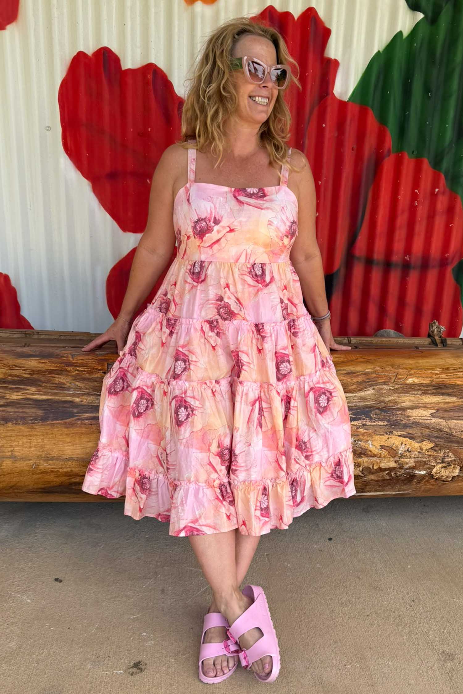 The Dancing Queen Dress – Pastel Poppy is a standout from Annah Stretton’s Linen and Cotton Dresses Collection, combining soft natural fibre comfort with whimsical design. Made from 100% breathable cotton, it offers light, airy elegance for warmer days.