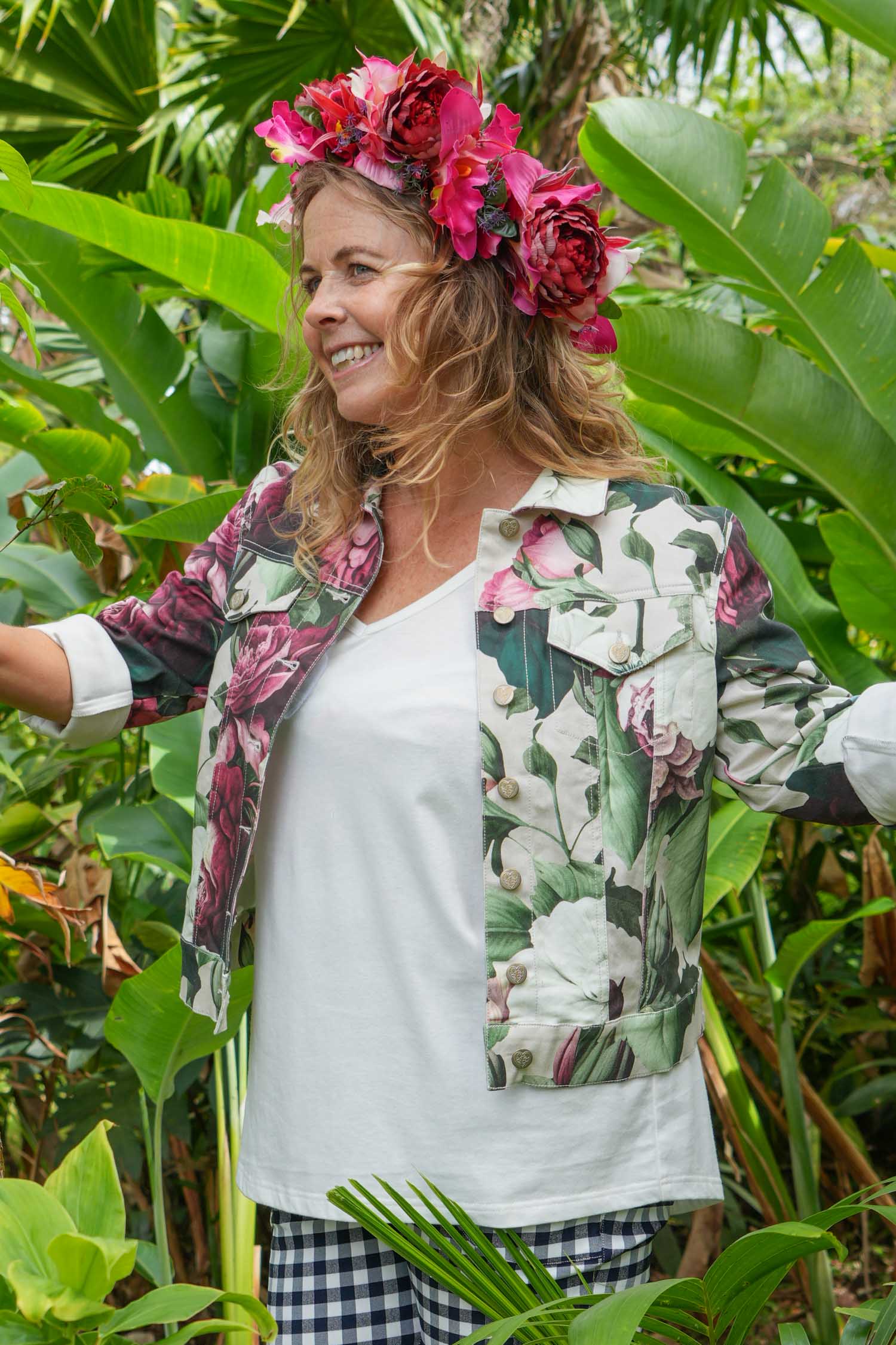 The DJ J'adore Jacket is a new and fun layering piece. Made from stretch denim, which ensures a super comfortable fit and a jacket that moves with you. This jacket makes a statement in our much loved J'adore Roses print, add sneakers or ballet flats for the perfect weekend style.