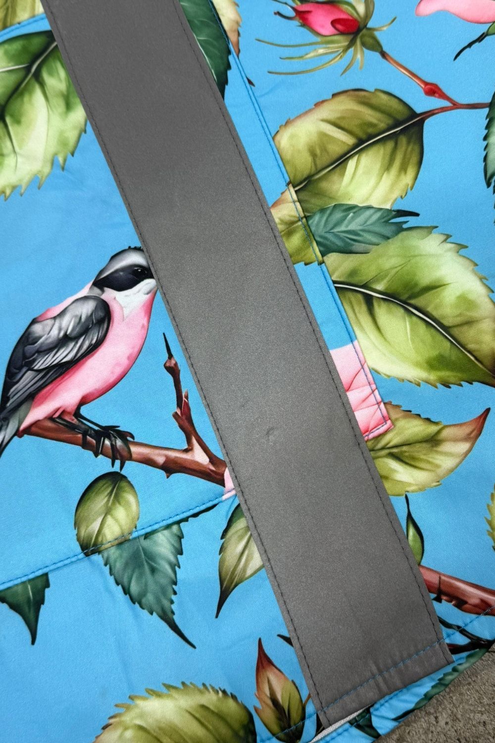 Bold floral print with reflective tape panels for night visibility