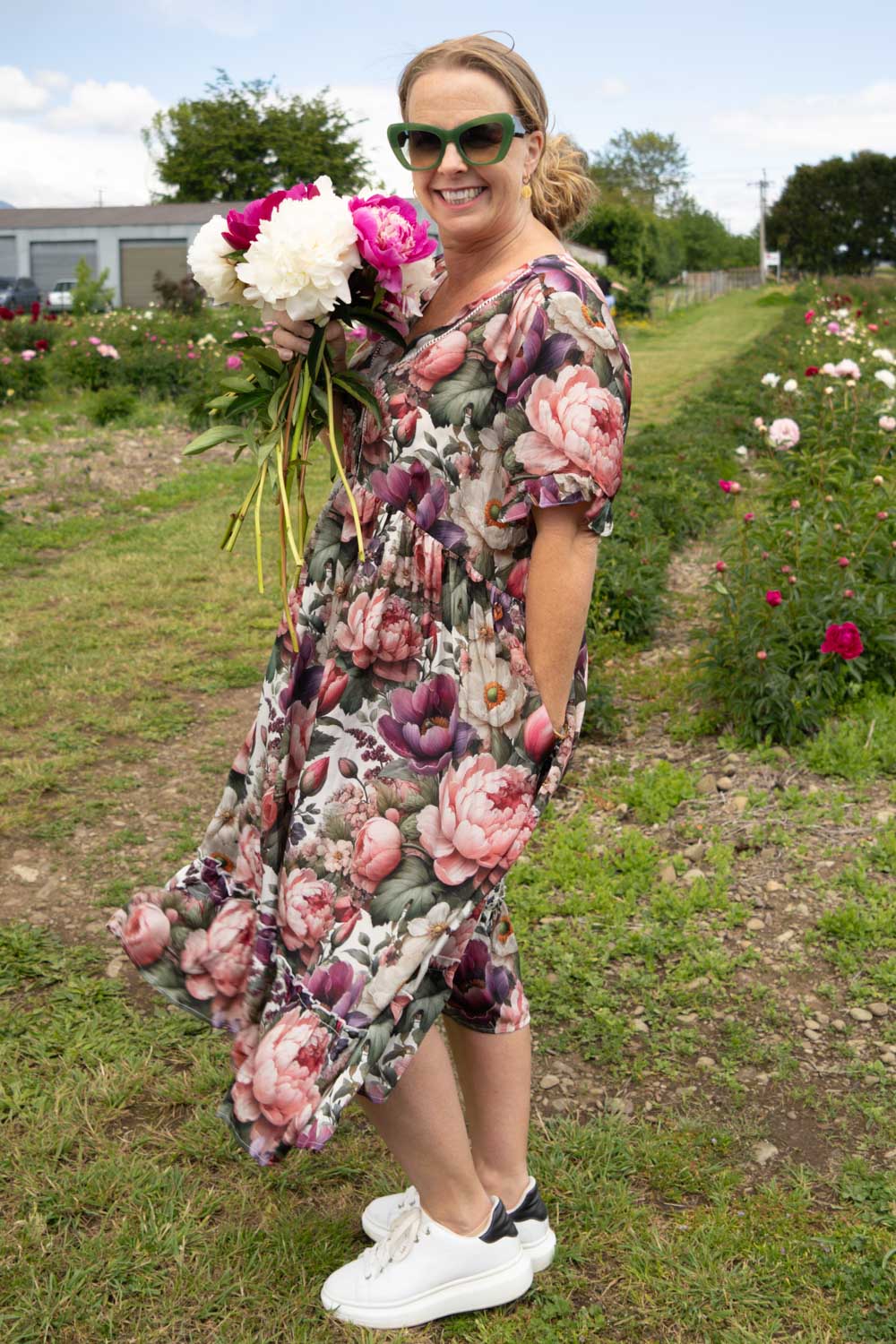 The Liberty Dress in Petal Poem is about to become your next wardrobe staple. Featuring a button-up V-neckline adorned with delicate lace faggoting, underbust gathering for a flattering fit, and soft frills at the sleeves and hem this dress blends femininity with effortless charm. Perfect for the office or dressed up for brunch with the girls, Liberty is your go-anywhere, do-everything kind of piece.