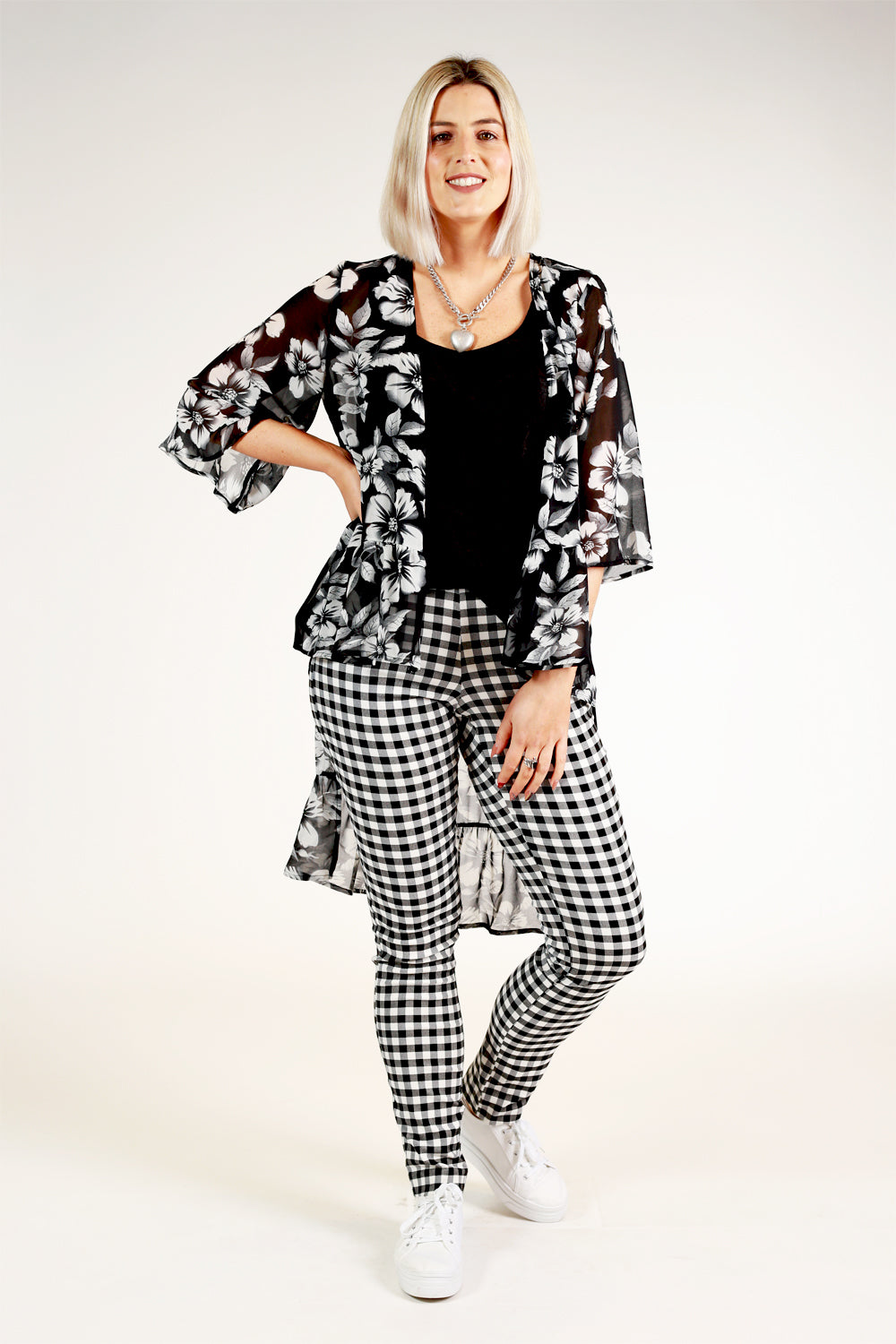The Vita Vanessa Pants are your classic trousers with a flattering black and white check pattern. Pair them under a shirt, longer tunic, or with a cute blouse to add a style update to your office dressing - these pants are the new statement piece for your 9-to-5 wardrobe. These are the Vita Violet Pants with slightly more length on the pant legs.